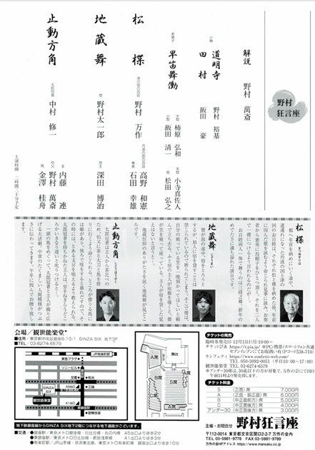 当店で【万作の会】主催公演のチケット手配させて頂きます!!